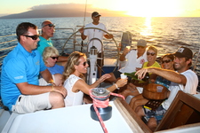 Enjoy two hours of sailing off the majestic West Maui Coast, sipping champagne and indulging in chocolates while the sun settles into the Pacific. Local beers, white wine, sodas, juices & bottled water are also available.